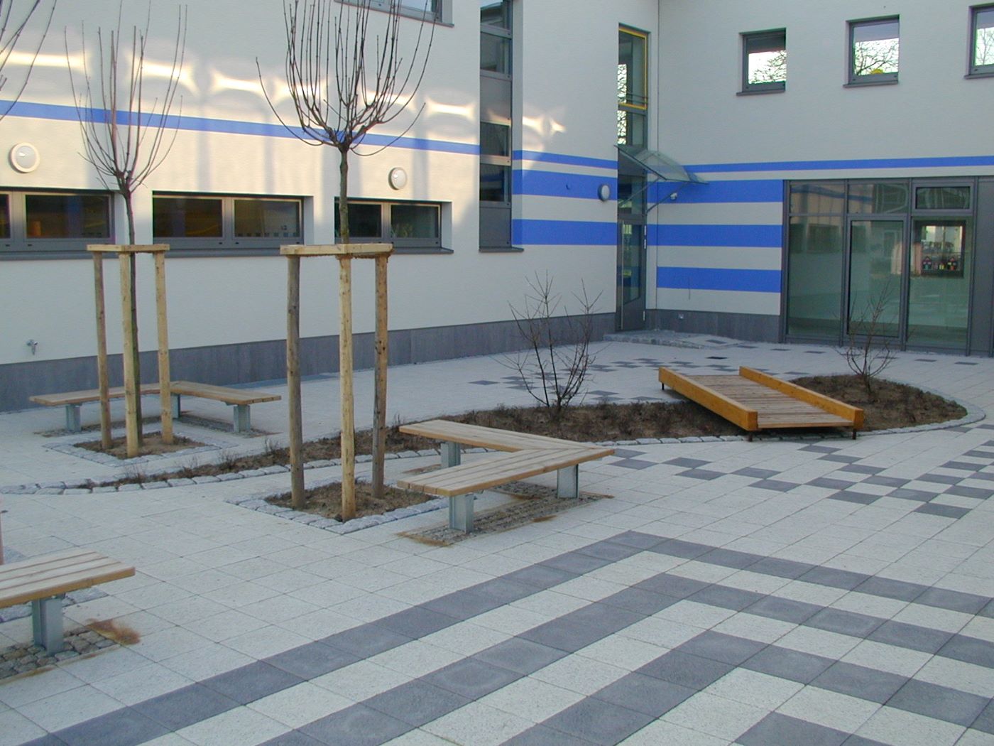 – Planung der Freianlagen (Pausenhöfe, Grün- u. Zufahrtsbereiche)